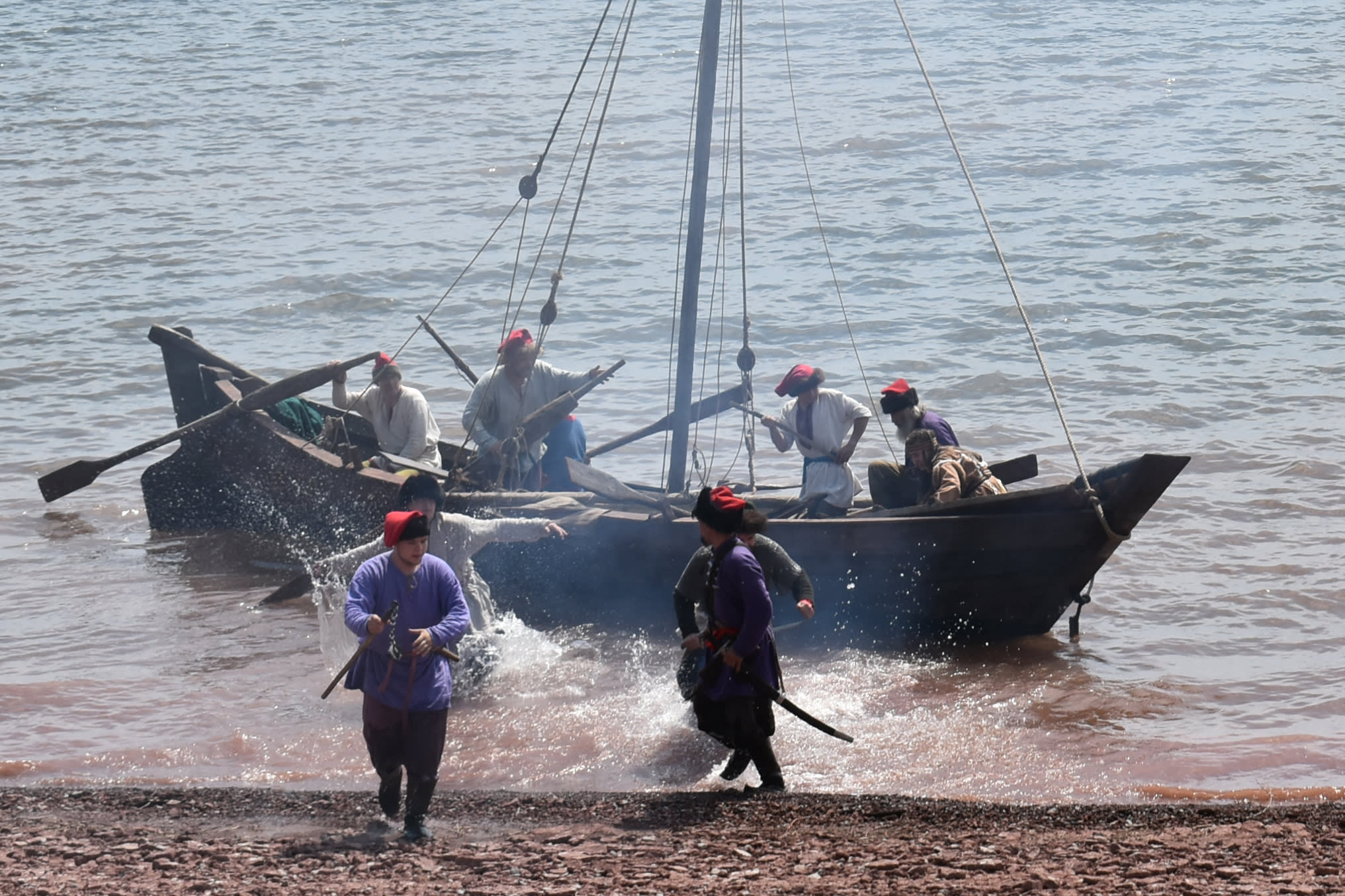 На парусном речном струге прибыла группа казаков для осмотра места, где впоследствии должны заложить острог, а также сбора ясака по указу царя Алексея Михайловича. Местные, понятое дело, не обрадовались такому повороту событий, завязался бой. Так или примерно так развивались события в XVII веке.