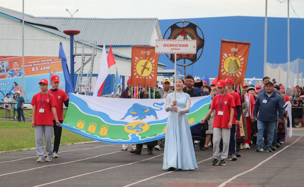 Объявляют пятиминутную готовность для участников парада «Сур-Харбан – 2023», в котором участвуют шесть команд из округа, а также спортсмены Ольхонского и Качугского районов.