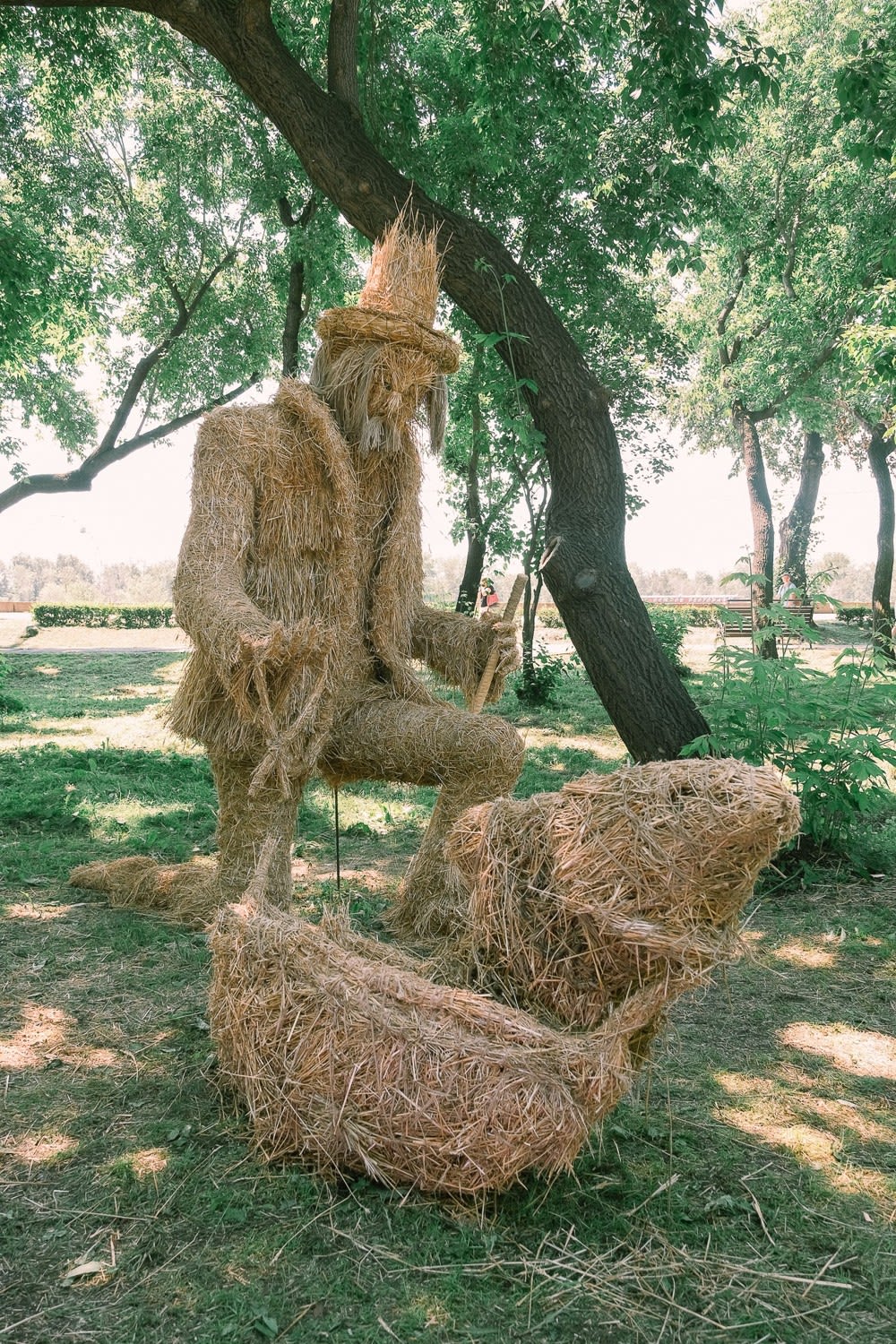 На первый взгляд, может показаться, что из соломы фигуры долго не простоят. Мастера заверили, что изрядно поработали над прочностью своих композиций, чтобы они радовали прохожих в любую погоду. Внутри каждой фигуры надежный каркас из дерева или металла. Кроме того, в качестве крепежей использовались саморезы, скобы, веревки, проволока и другие доступные материалы. Также солома предварительно была обработана огнезащитными средствами.