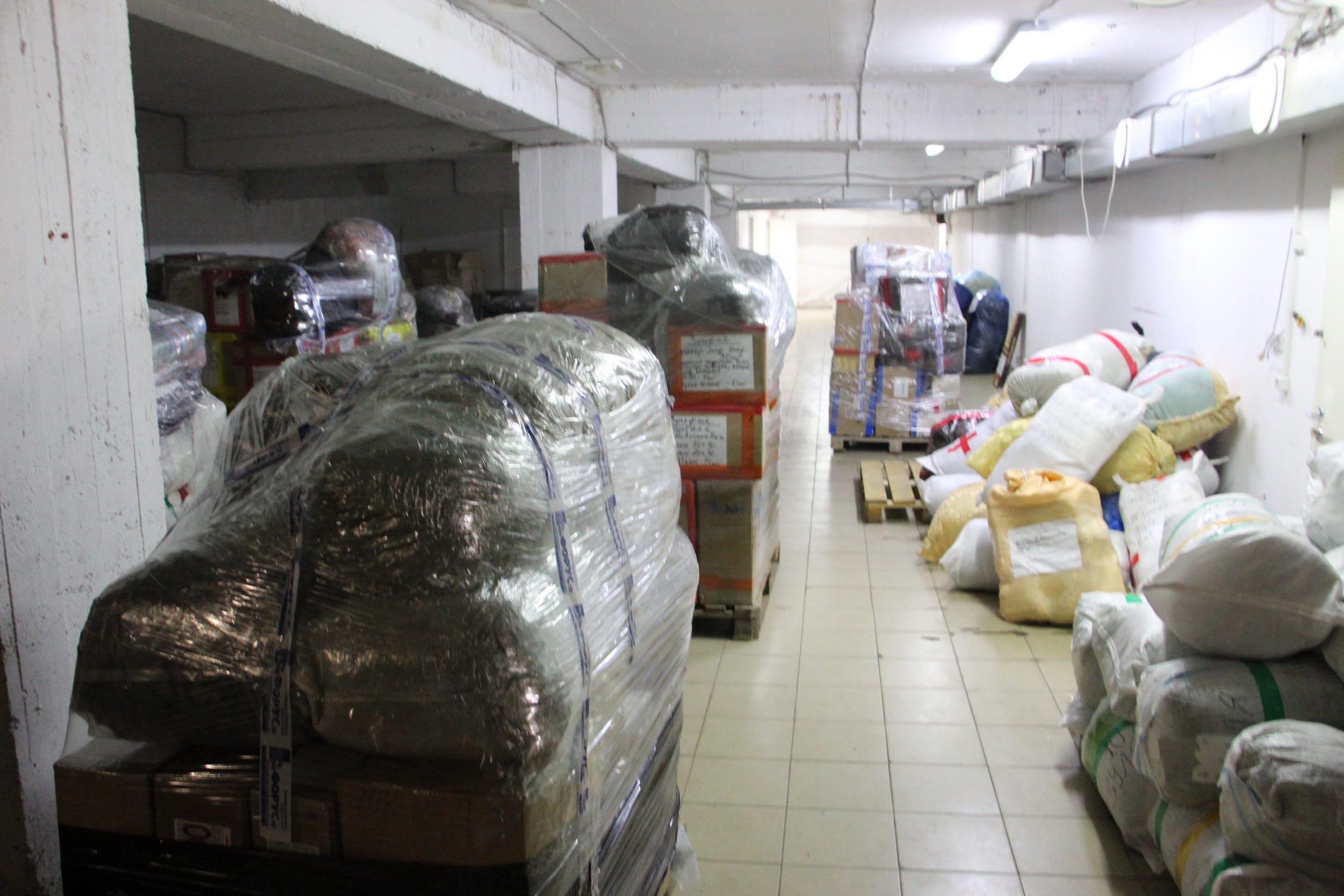 Над входом в склад висит большой красный баннер «Пункт сбора помощи Донбассу». Нас встречает и проводит внутрь член правления Союза ветеранов органов безопасности региона Владимир Тимофеев. Он не выпускает телефон из рук, главное – всегда быть на связи.