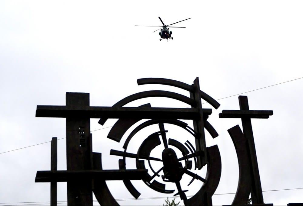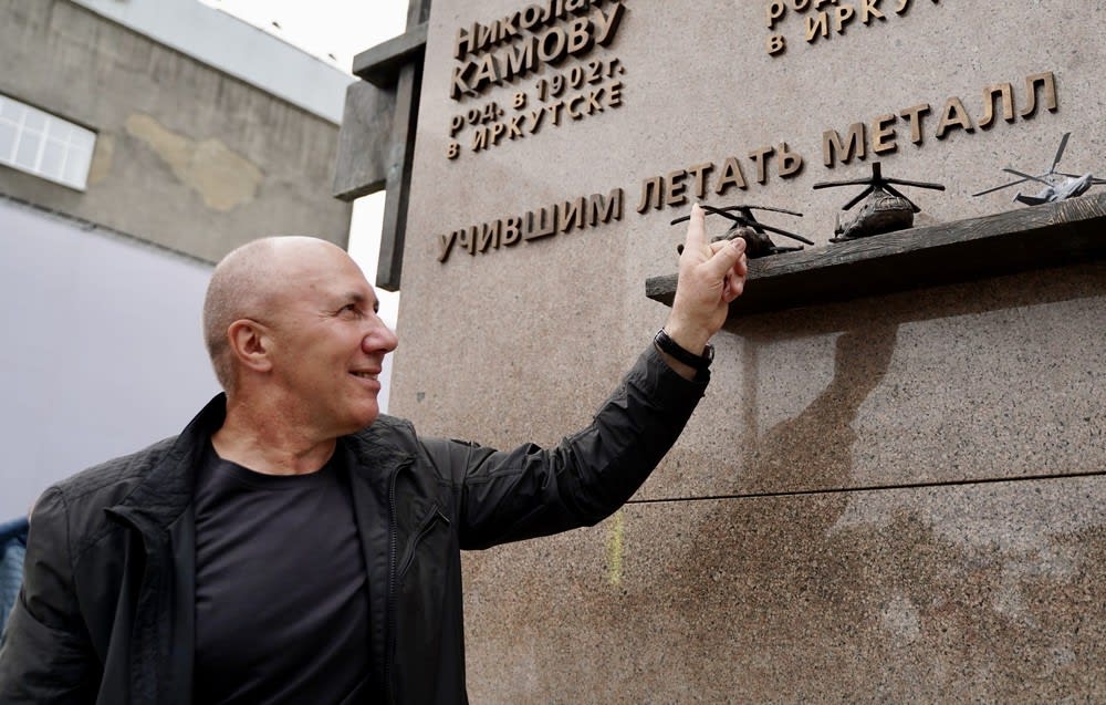 Пятиметровая архитектурно-художественная композиция, изображающая взлетающий вертолет, посвящена легендарным авиаконструкторам, иркутянам Михаилу Милю и Николаю Камову.