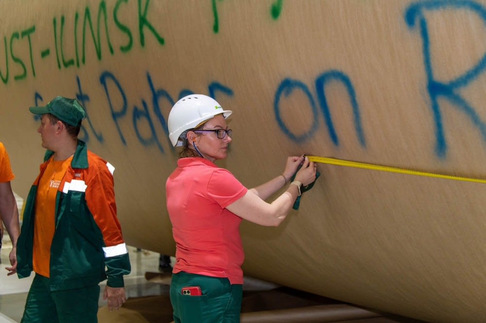 Самая мощная в России картоноделательная машина в пусковом режиме на скорости 825 метров в минуту выдала 69 тонн пускового картона плотностью 127 граммов на квадратный метр. На гигантском роле шириной 9,5 метра сделали историческую надпись: «16.07.2023. 1-й тамбур!» На его фоне сфотографировались все участники пуска.