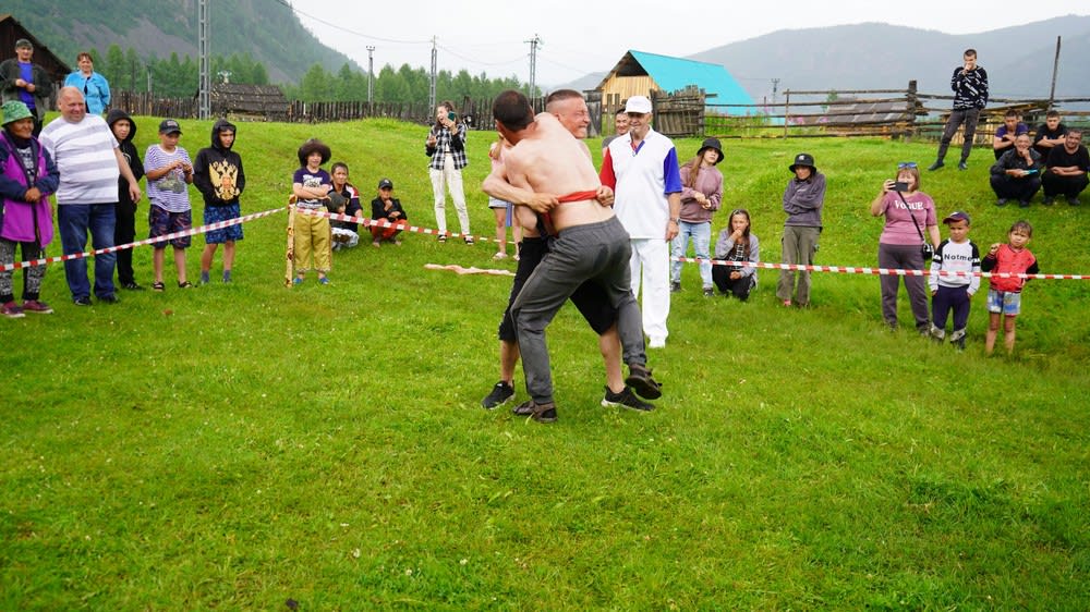 Праздник по традиции открылся обрядом освящения, в котором шаман попросил духов тайги ясного неба и доброго праздника. Погода однако подвела – в разгар спортивных схваток пошел дождь.