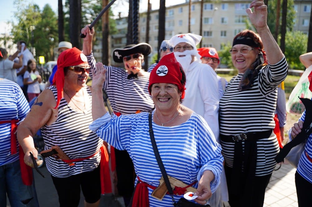 В праздничном шествии приняли участие около тысячи человек. Большой колонной прошли трудовые коллективы и творческие саянские семьи от сквера Первостроителей до торговой площади, где оборудовали большую сцену, там проходила официальная часть программы. Театральные наряды жителей Саянска ничуть не уступали в оригинальности образу мэра. Например, медики городской больницы превратились в героев фильма «Кавказская пленница», «Саянскхимпласт» объявил марафон комедий Леонида Гайдая, продемонстрировав самые известные сцены из его культовых комедий. А союз пенсионеров на карнавале – злодейская команда, банда пиратов из серии мультфильмов «Доктор Айболит», которую возглавлял Бармалей, за эту роль отвечала председатель Союза ветеранов Людмила Новичкова.