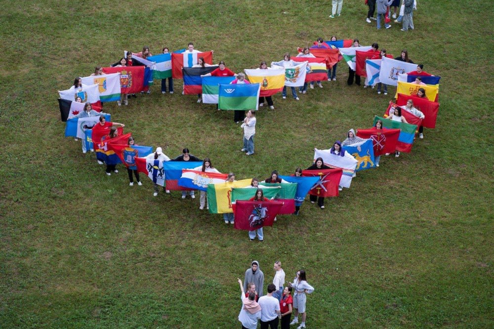 Участники провели масштабную акцию, символизирующую единство, верность традициям и уважение к многовековой истории России. На территории института школьники выстроились в большое сердце из флагов своих регионов. Затем активисты молодёжного движения растянули огромное полотно российского триколора площадью 150 кв. м.