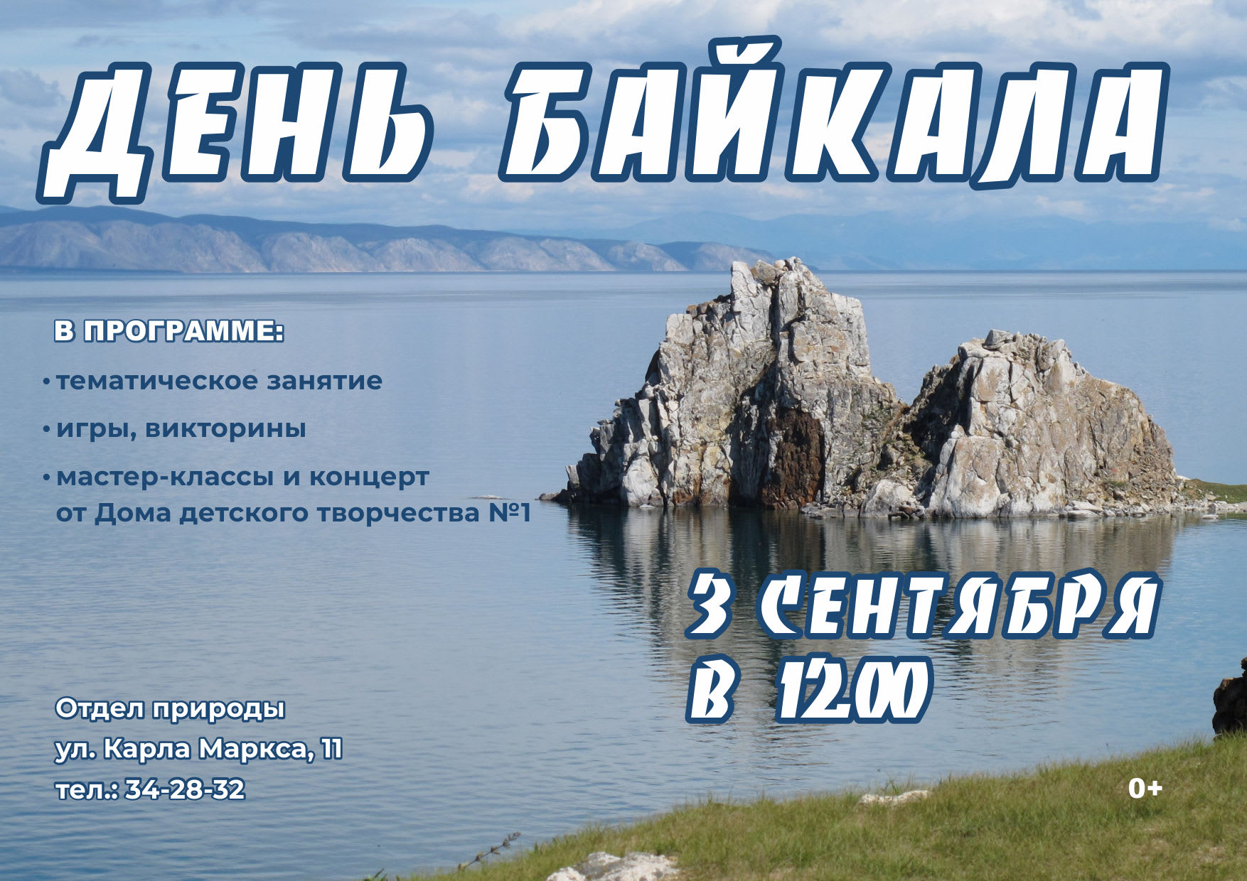 Отдел природы Иркутского областного краеведческого музея имени Н.Н. Муравьева-Амурского 3 сентября в 12:00 приглашает детей и взрослых на экологический праздник «День Байкала». Гостей праздника ждут мастер-классы от педагогов дополнительного образования и концерт от учащихся Дома детского творчества №1. Участники мероприятия также посмотрят выставку работ в окнах отдела «Озеро с душой океана», организованную совместно с Дворцом детского и юношеского творчества.