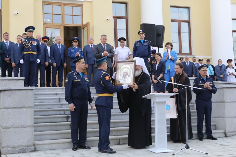 Церемония открытия прошла на площади перед главным корпусом училища, где рядом представлены 14 бюстов героев-летчиков – уроженцев региона, из них 12 Героев Советского Союза и два Героя Социалистического Труда: это авиационные конструкторы Николай Камов и Михаил Миль.