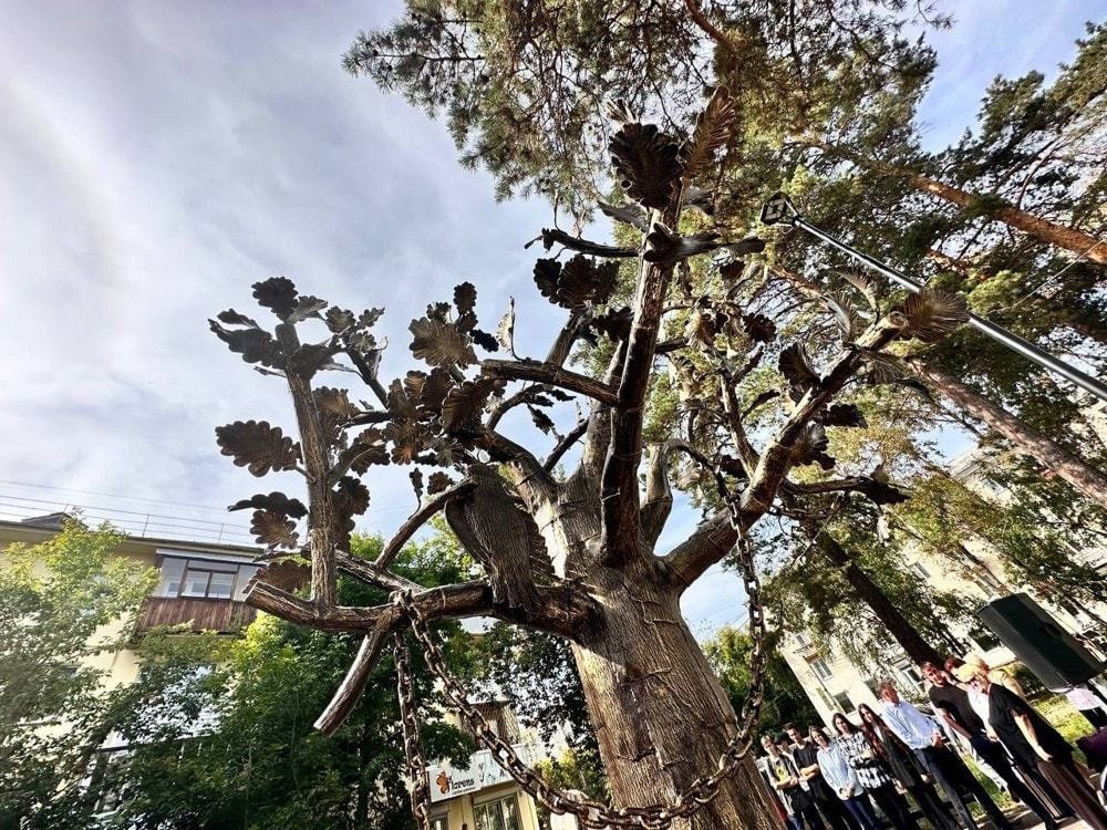 Скульптуру выковал художник по металлу, скульптор Андрей Митрягин в Белгороде. Лавочки, дуб и цепь сделали кузнецы отец и сын Виктор и Павел Сливки.