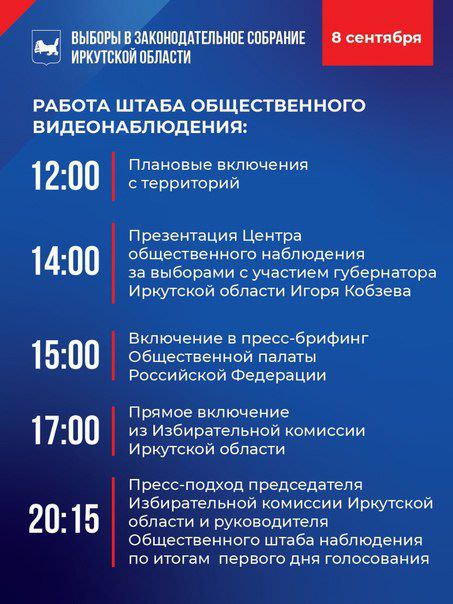 В Иркутской области 8-10 сентября на время выборов депутатов в Заксобрание работает штаб общественного видеонаблюдения. Об этом 8 сентября сообщает «Областная».