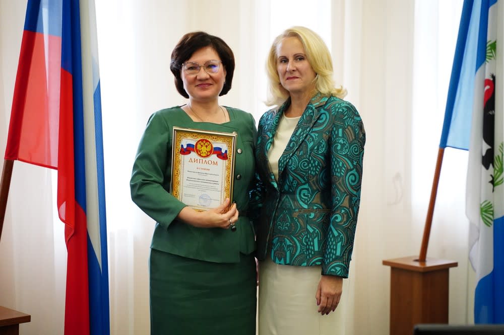 Перед началом торжественной церемонии к собравшимся обратилась министр финансов Иркутской области Наталия Бояринова:
