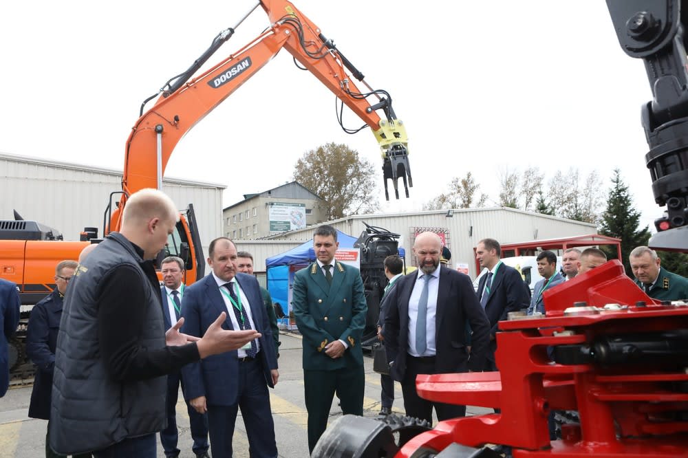 Перед началом пленарного заседания губернатор Иркутской области Игорь Кобзев и гости форума осмотрели технику, экспонированную на выставке SibWoodExpo, в которой приняли участие более 30 компаний из России и Республики Беларусь.