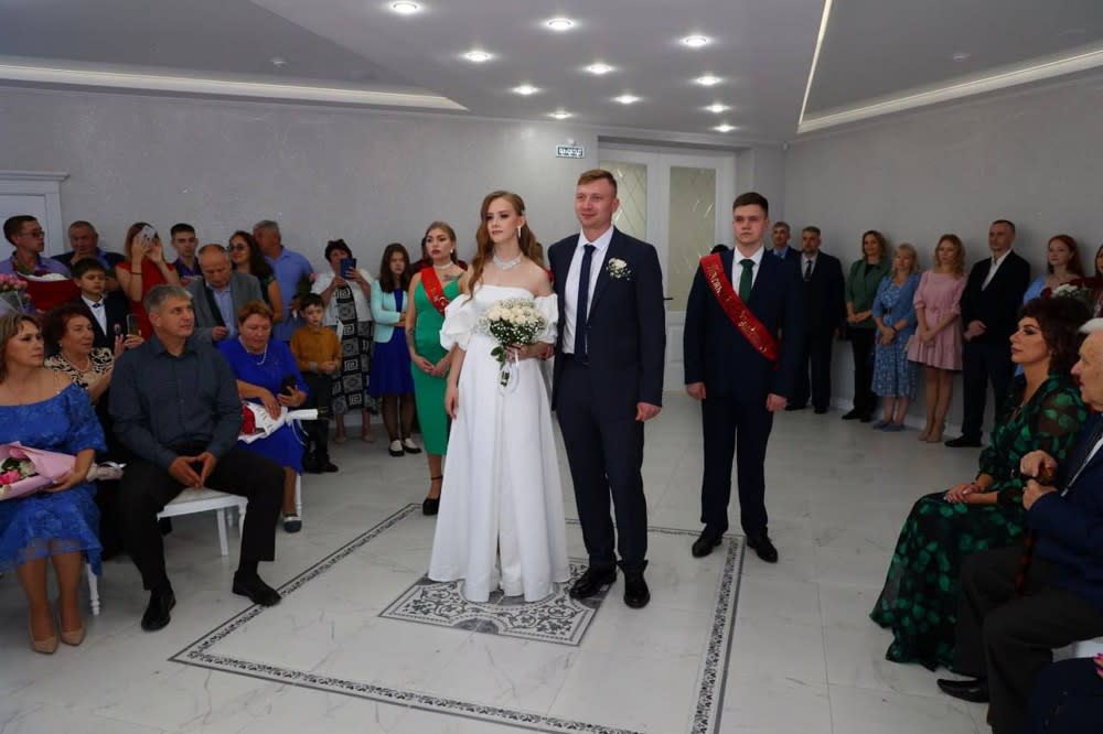 Первыми в обновленном интерьере заключили брак Дмитрий и Вероника Кажарские. Свидетельство о заключении брака молодоженам вручил Валерий Митусов. Секретом семейного счастья с новобрачными поделилась заслуженная семья города Владимира Петровича и Людмилы Степановны Костюченко.