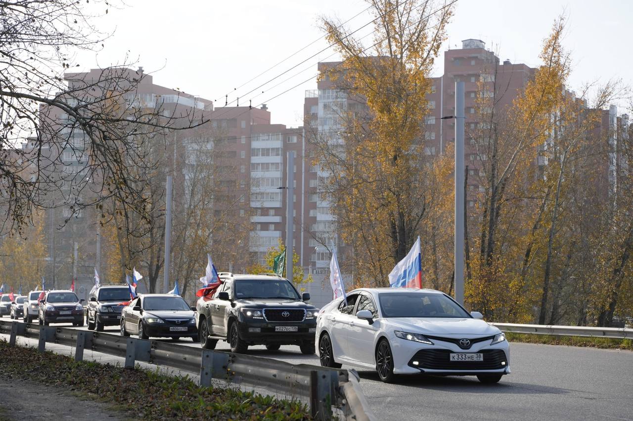 В областном центре автопробег прошел по маршруту от спортивного комплекса «Байкал-Арена» по улицам Ширямова, Баррикад и Мира до стадиона «Зенит». В нем приняли участие губернатор Игорь Кобзев, председатель Заксобрания региона Александр Ведерников, представители Народного фронта, Федерации бокса, активисты комитета семей воинов Отечества Иркутской области и участники специальной военной операции с семьями.