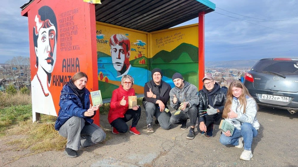 Городскую остановку в Нижнеудинске расписали портретами поэтов
