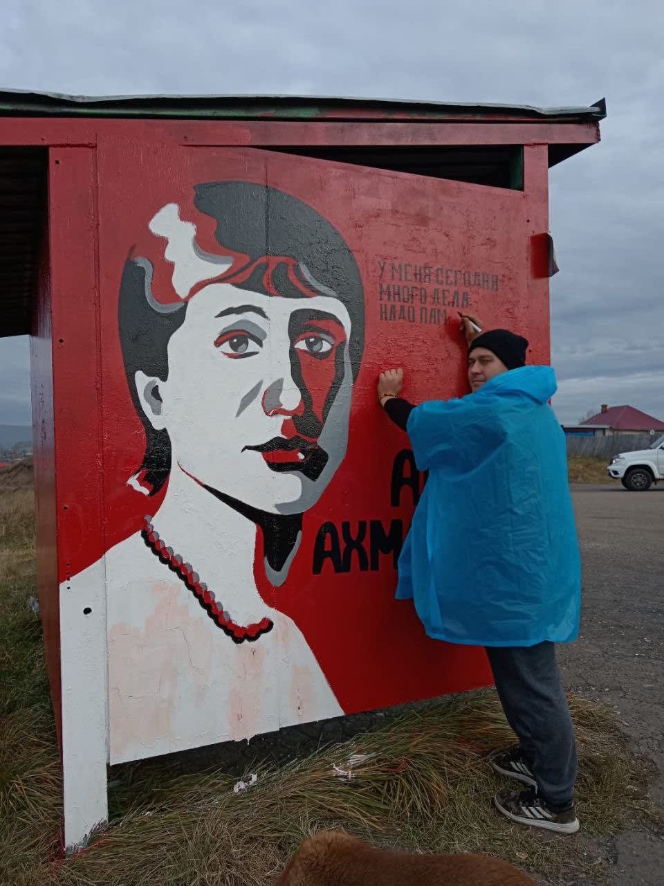 Нижнеудинск отметил свое 375-летие. Креативный подарок приготовили ребята из Общества молодых художников, они расписали остановку на улице Профсоюзной портретами поэтов: Сергея Есенина, Владимира Маяковского и Анны Ахматовой. Об этом 16 октября 2023 года сообщает «Областная».