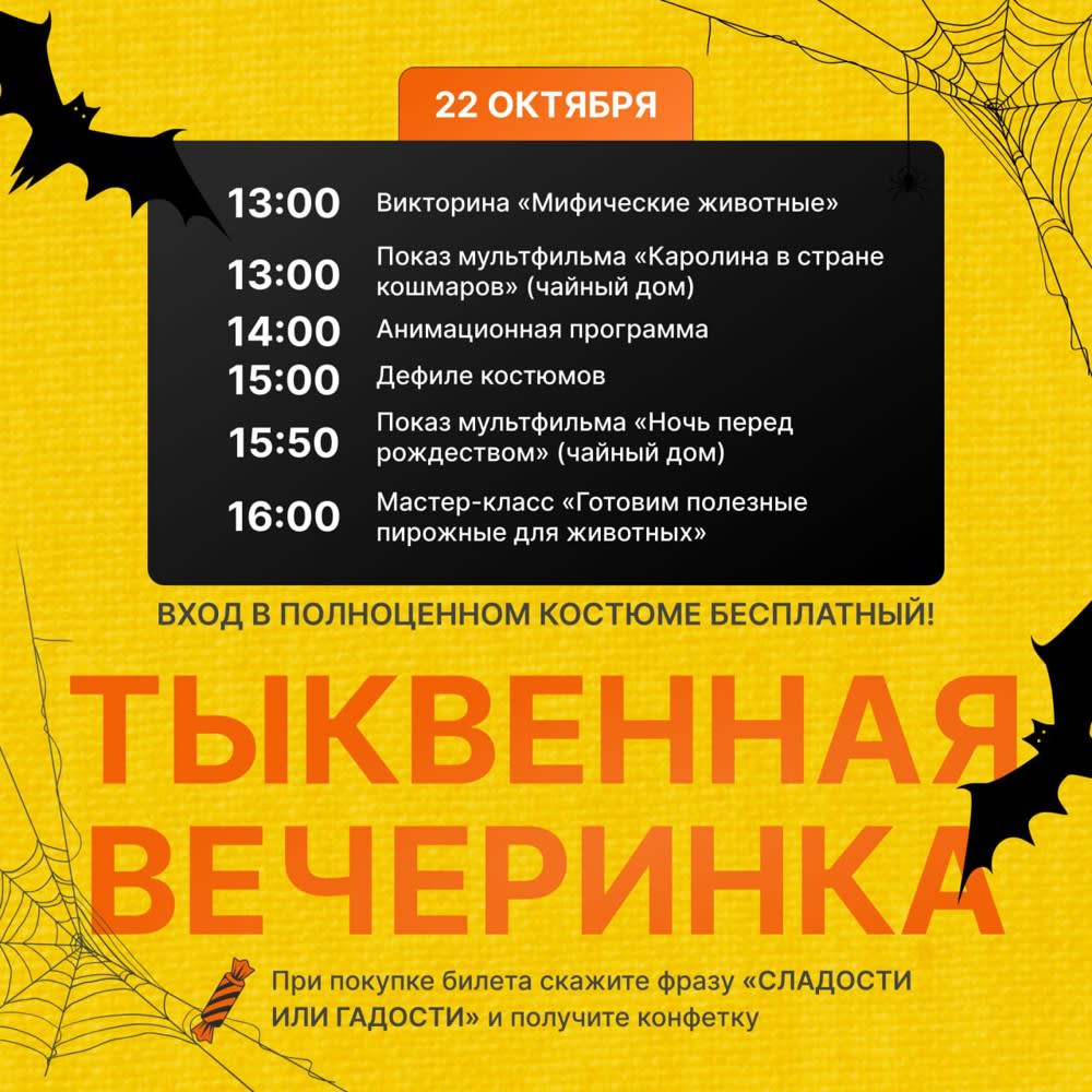 Тыквенная вечеринка в зоосаде. Насыщенная программа для детей любого возраста. Начало в 13:00. Адрес: ул. Кольцова, 93 (территория Ботанического сада ИГУ). Подробная информация: +7 (3952) 66-46-39.
