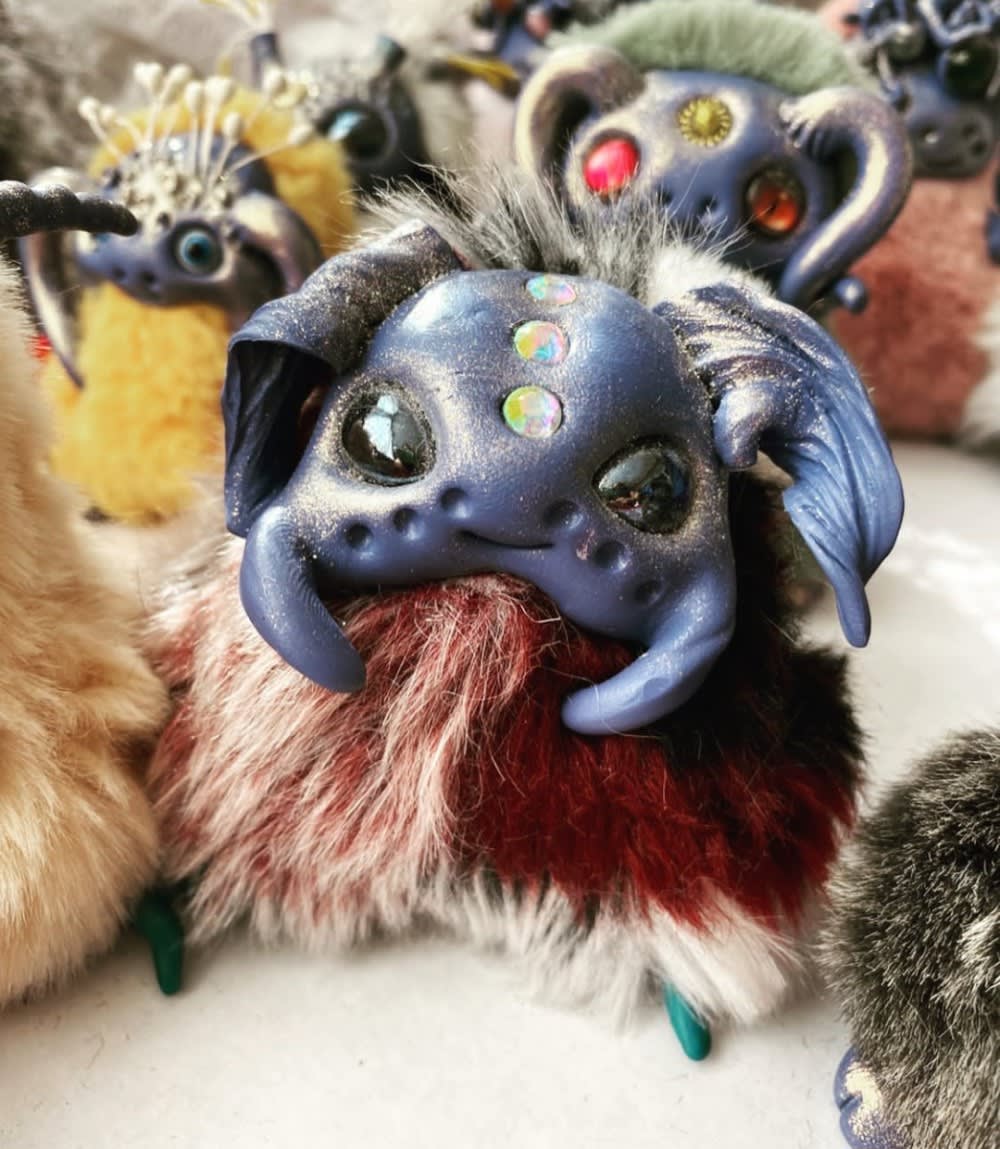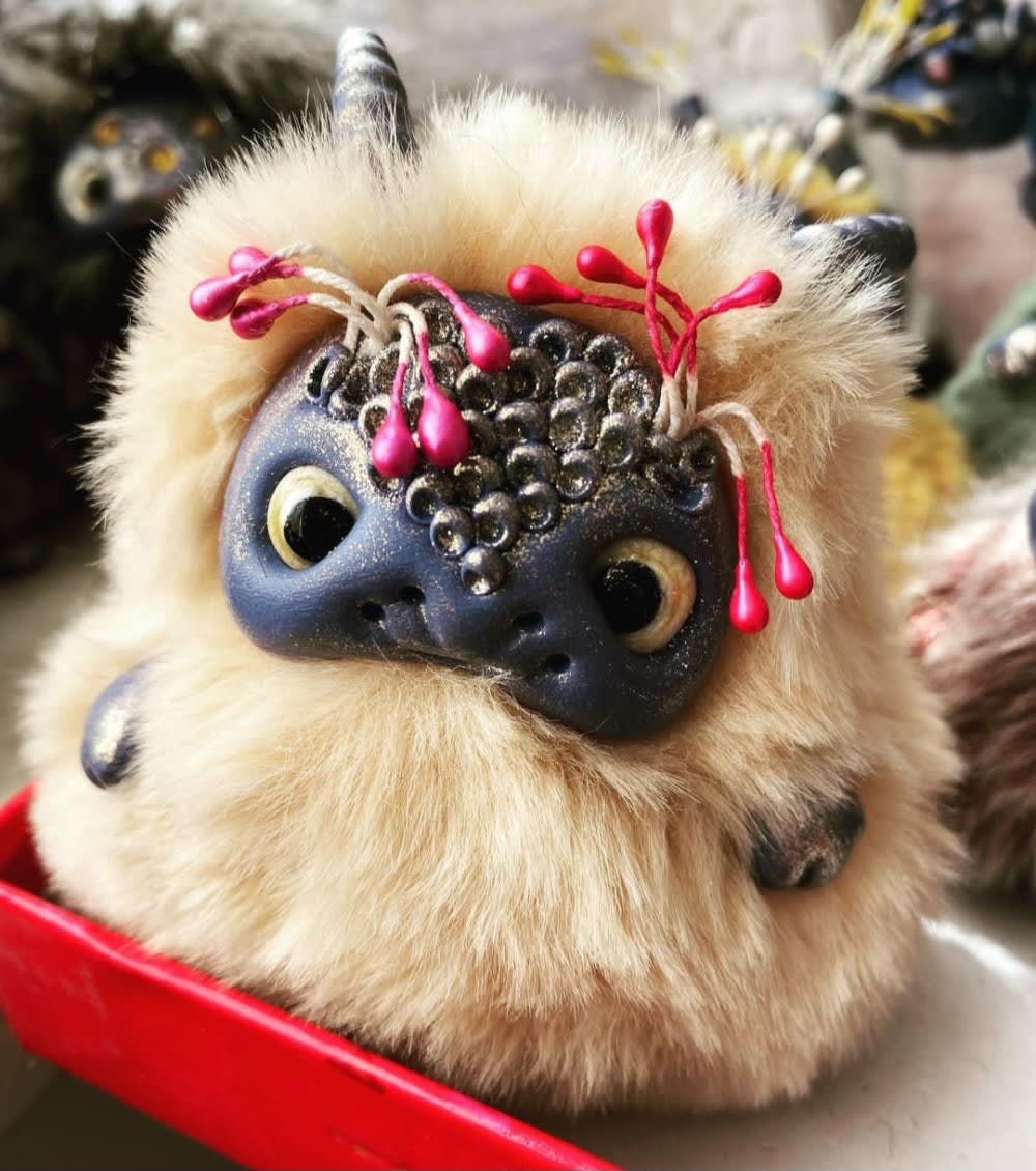 Денфик – это сказочное существо, которое живет в лесу. Он хорошо ориентируется в темноте, у него чуткий слух и зоркие глаза. Чаще всего ведет ночной образ жизни, хранит очаг, любит укромные места. Еще их называют монстриками, хранителями, чудовищами, чучиками или гремлинами. Автор создает игрушки при помощи полимерной глины и искусственного меха.