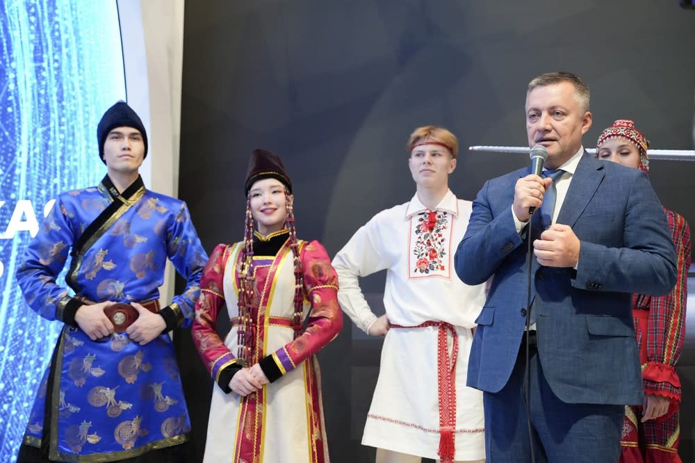 В день открытия гостей стенда встречала Красавица Ангара. Сначала она появилась на экране, затем на площадку вышла актриса в костюме Ангары. Вместе с ней присутствующих приветствовали представители разных народов, живущих в Иркутской области, провели тематическую викторину «Народы Сибири». После вместе с губернатором приняли участие в телемосте с представителями национально-культурных объединений в Иркутске. Игорь Кобзев передал участникам телемоста подарки – красочное издание книги об Иркутской области.