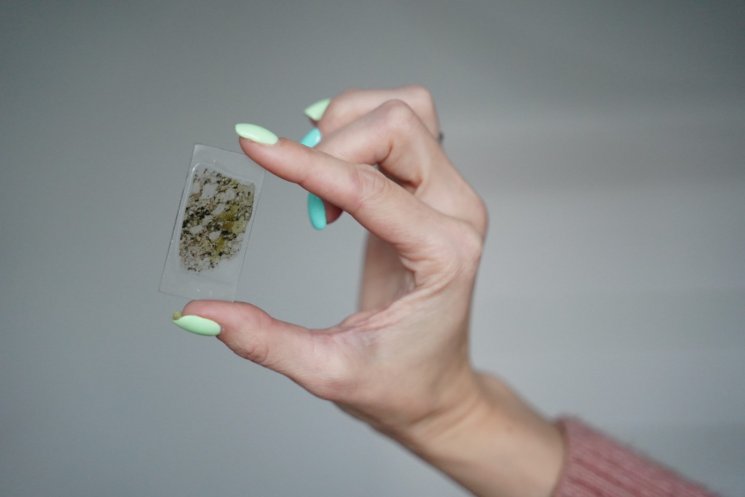 Мы стараемся разглядеть в камне блестки будущих бриллиантов. Но содержание алмазов в этой кимберлитовой трубке – около 0,5 карат на тонну. И Анну в этом фрагменте подземной глыбы больше интересуют пироксены. Их химический состав, вместе с другими данными, позволяет узнать, как минералы кимберлита жили в мантии.