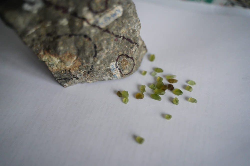 Если набрать в поисковике интернета слово «оливин», то главным образом появятся ссылки на его «магические» свойства и способность защитить от порчи и сглаза. Но это для модных ненаучных эзотериков. Для ученых – это породообразующий минерал. Вот он, в виде маленьких зеленых камушков лежит на ладони нашей героини.