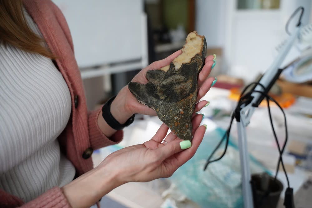 – Кимберлит, как мусорная помойка, поднимается с больших глубин и все собирает из мантии и коры, в том числе алмазоносные породы. Этот образец исследуем по проекту, который поддержан Российским научным фондом. Я являюсь руководителем молодежной группы по программе президента. Грант рассчитан на три года. Мы изучаем породы, которые извергались в Якутии. Образцу примерно 360 млн лет. Магма поднялась с глубин порядка 150–180 км. Она проделала большой путь и по дороге захватывала кусочки мантии. Этот, выделенный на образце фрагмент, – та самая мантия. Так примерно выглядит наша Земля внутри.