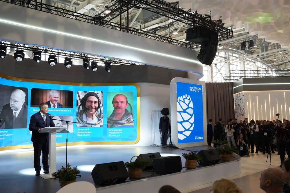 Губернатор Иркутской области Игорь Кобзев презентовал интерактивный стенд Приангарья, рассказал о его концепции и об основных достижениях региона: