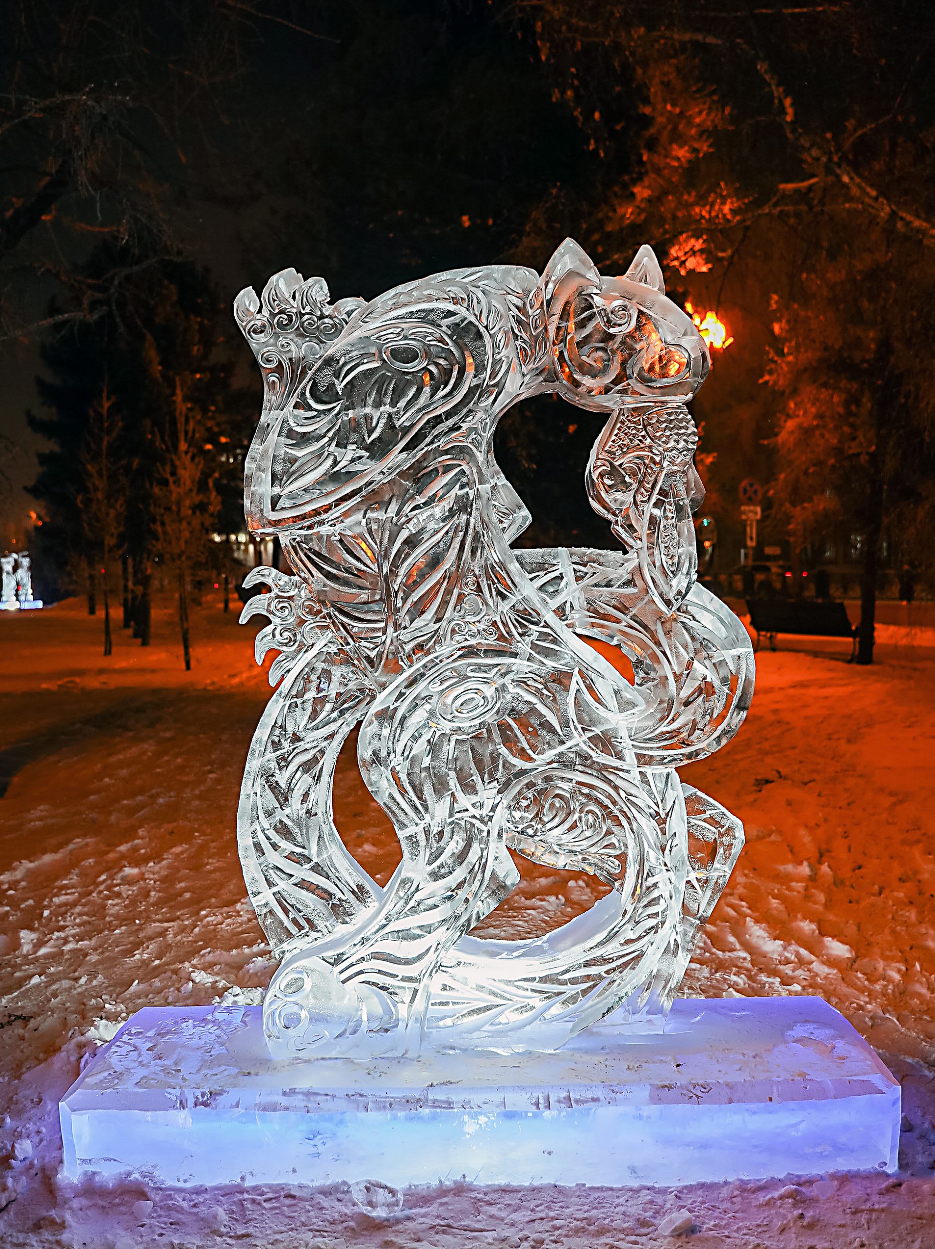 – Я по профессии дизайнер и занимаюсь больше художественной росписью, – говорит Вячеслав. – Ледяные скульптуры для меня новая и интересная тема. Когда получил приглашение, то быстро согласился, решив попробовать свои силы, и выбрал свободные темы, – рассказал ледовый скульптор.