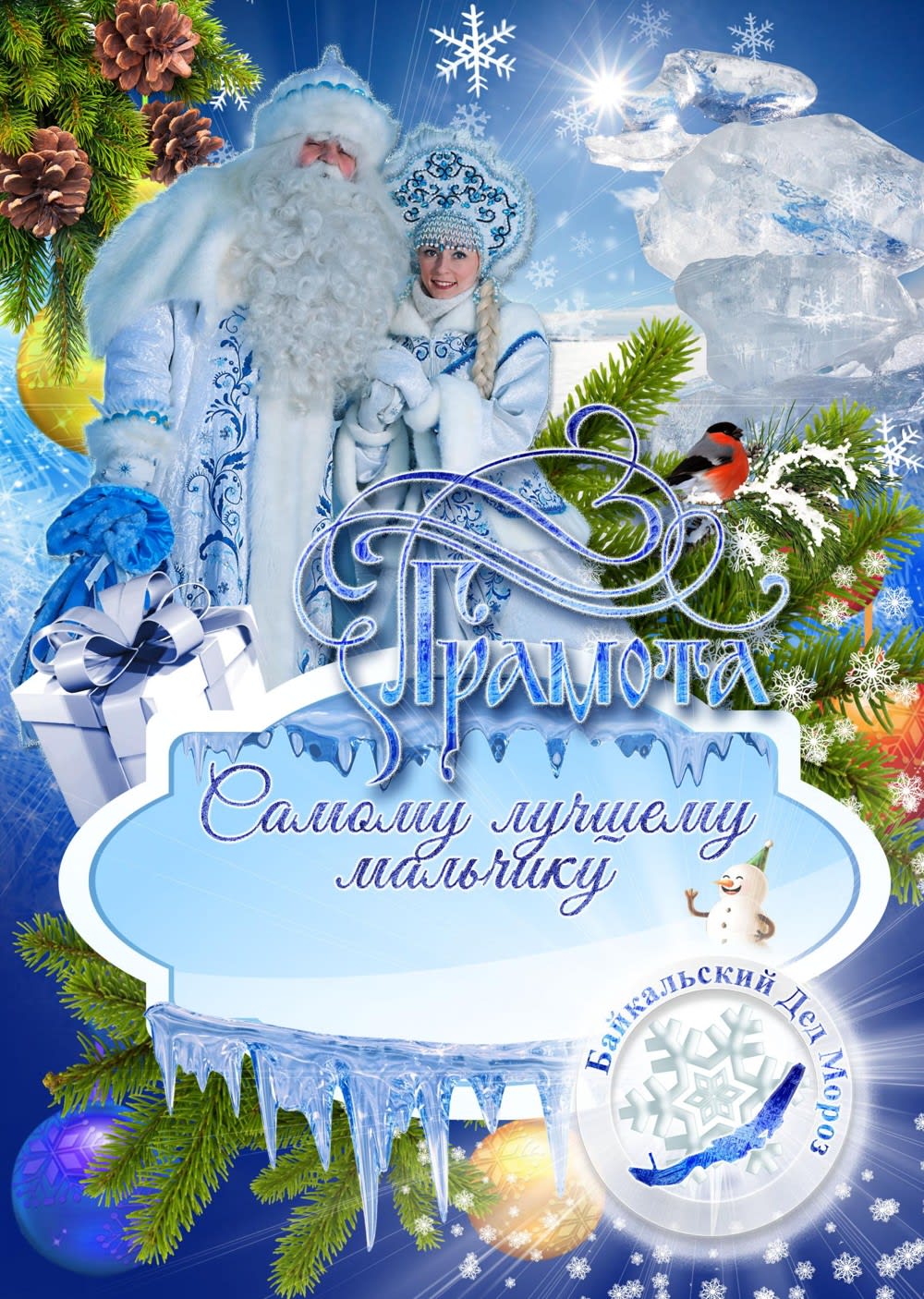 Открытками, сладостями. Скачайте готовые грамоты у Байкальского Деда Мороза(см. раздел полиграфия) и вложите их в основной подарок. Нам понравились с подписями «Самому лучшему мальчику» и «Самой лучшей девочке». Детям точно будет приятно увидеть такое. Подписать можно в редакторе фотографий или от руки.