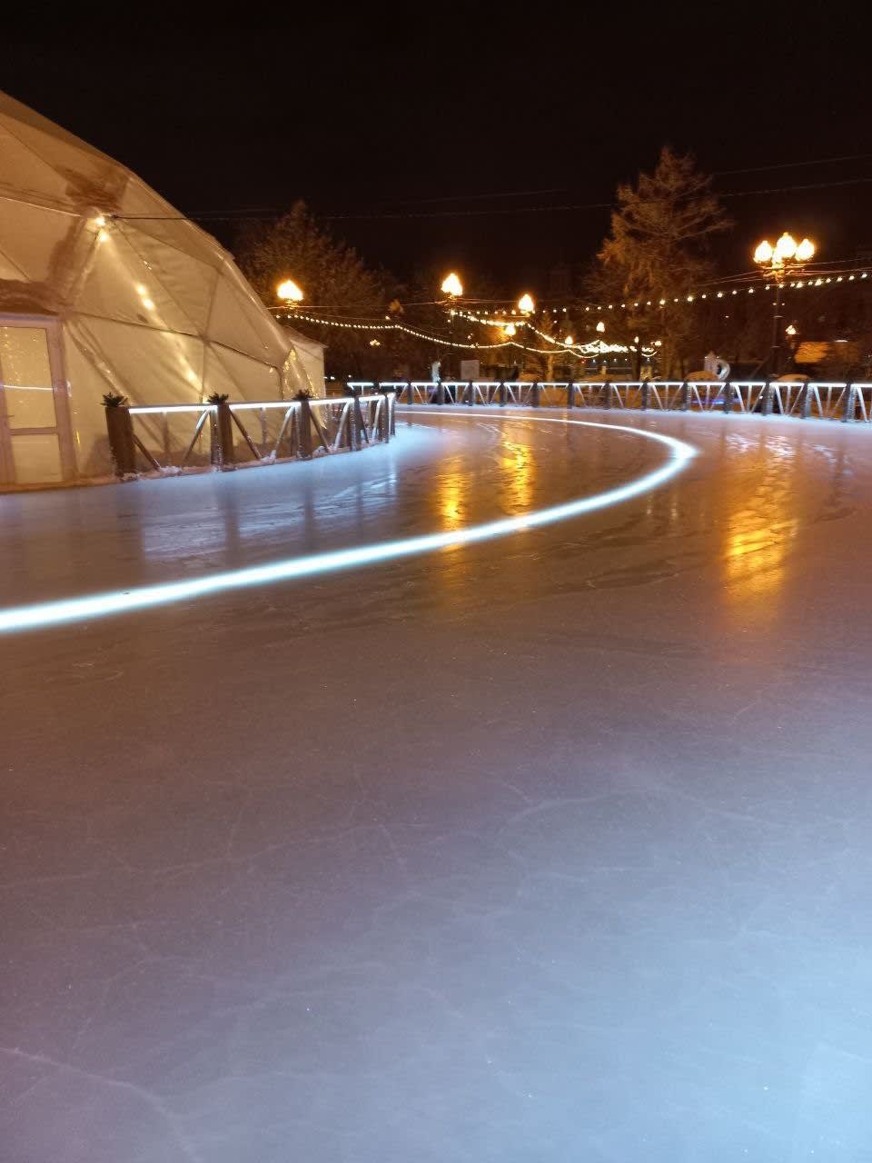 Работает бесплатный каток и прокат коньков на сквере им. Кирова. Лед залили вокруг фонтана, а чашу сооружения накрыли прозрачным куполом: здесь будет работать радиостанция. Вокруг установили деревянное ограждение. По внешнему и внутреннему периметрам оборудовали подсветку. В лед вмонтирована светодиодная лента, разделяющая поле на дорожки.