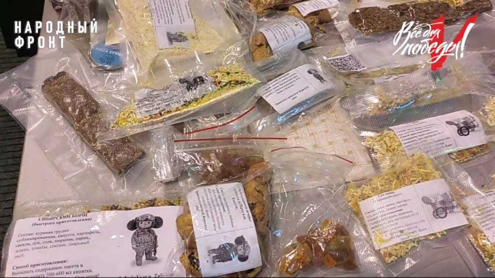 У бойцов в меню борщ, суп с курицей, молочная каша с цукатами и печенье с сухофруктами и орехами.