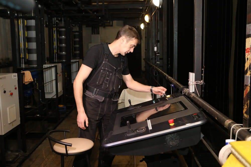 – Сейчас в автоматическом режиме управляются: штанкеты, софитные фермы, приводы, лебедки, дорога занавеса, – рассказала директор театра Татьяна Мезенцева. – Весь этот новый комплекс оборудования позволяет заранее прописывать сценарий подъема декораций, регулировать точность и скорость всех действий. Это значительно облегчает работу помощникам режиссера и машинистам сцены, контролирующим процесс. Раньше всем этим оборудованием управляли вручную. Сейчас ребята осваивают все возможности механики, им нужно отработать в новом режиме все репертуарные спектакли, которых у нас больше 30. Теперь у режиссеров и художников появится больше возможностей, чтобы сделать наши спектакли еще ярче, динамичнее и зрелищнее.