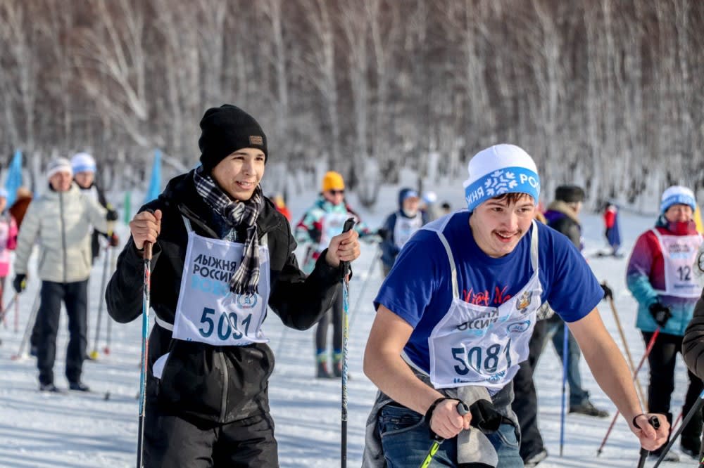«Лыжня России» в районе лыжной базы ИрГАУ в поселке Молодежный. Зарегистрироваться на гонку можно через «Госуслуги».