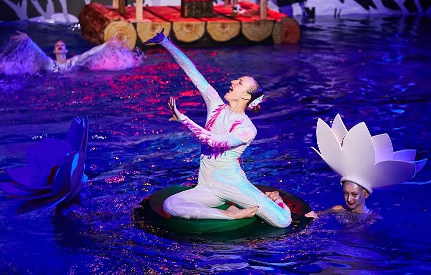 Музыкальный спектакль на воде «Сказ о русских берегах» – это переплетение спорта и искусства, в котором состоявшиеся спортсмены показывают свое мастерство в совершенно новом амплуа. В основе истории – путешествие во времени и пространстве по водным артериям нашей страны. Билеты можно приобрести по ссылке.
