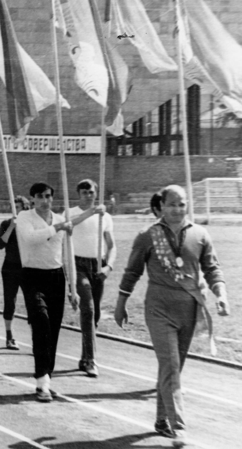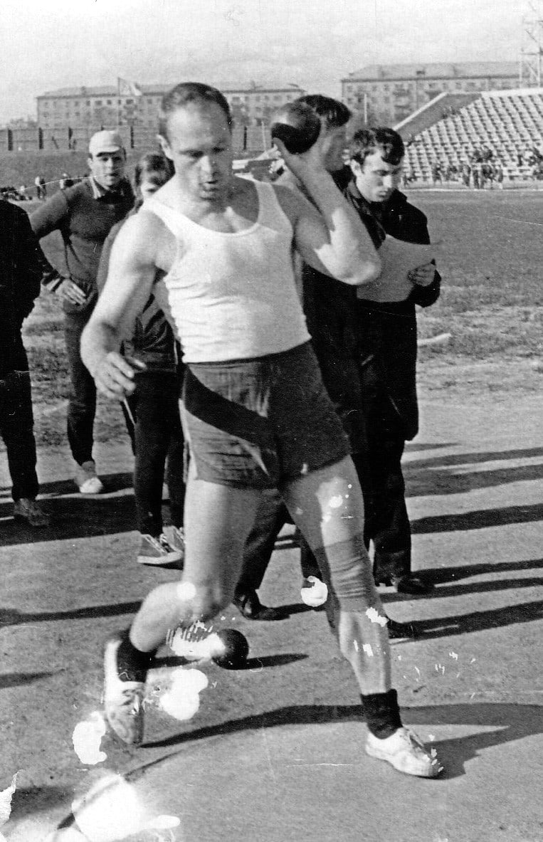 В то время появилось и новое увлечение – волейбол. Площадки не было. Играли через веревку и тряпичным мячом. Затем – футбол. А зимой – хоккей: вместо шайбы – ледышка, вместо клюшки – палка. В юности увлекся разными видами спорта: плавание, тяжелая атлетика, но главным увлечение стала легкая атлетика, прежде всего, легкоатлетические метания.