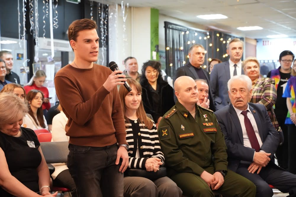 В завершение визита почетных гостей в Ангарском молодежном центре «Лифт» прошел телемост с военнослужащими из Ангарска, находящимися в зоне проведения специальной военной операции.