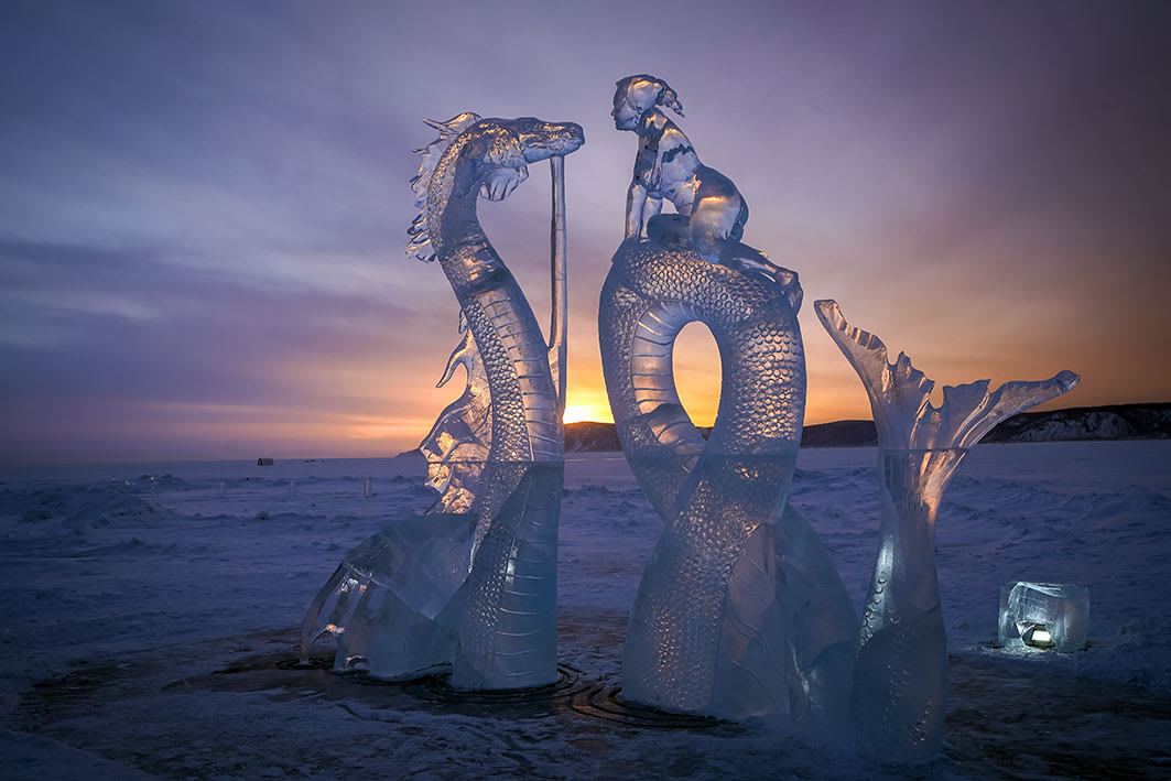 Дракон, монгольская красавица в традиционной одежде, русалка и другие композиции будут радовать гостей до тех пор, пока не растает лед.
