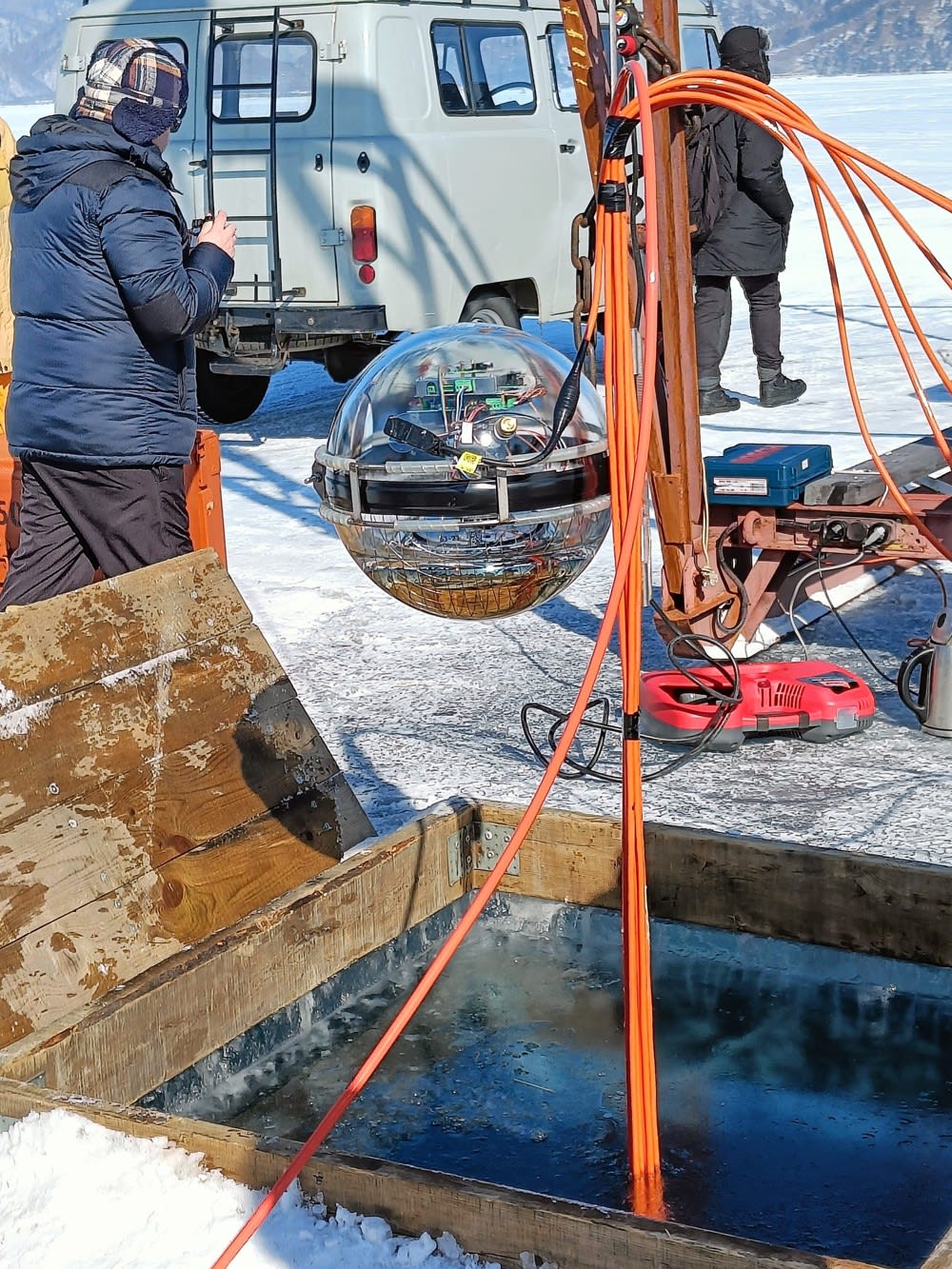 Развертывание 13-ого кластера нейтринного телескопа проходит на Байкале. Четвертое рабочее совещание по статусу и перспективам развития проекта Baikal-GVD прошло на месте дислокации ледового лагеря. Представители ИГУ, Объединенного института ядерных исследований (ОИЯИ, Дубна), Института ядерных исследований РАН и другие участники группы обсудили возможности технического развития телескопа, а также береговой инфраструктуры. Об этом 13 марта 2024 года сообщила пресс-служба вуза.