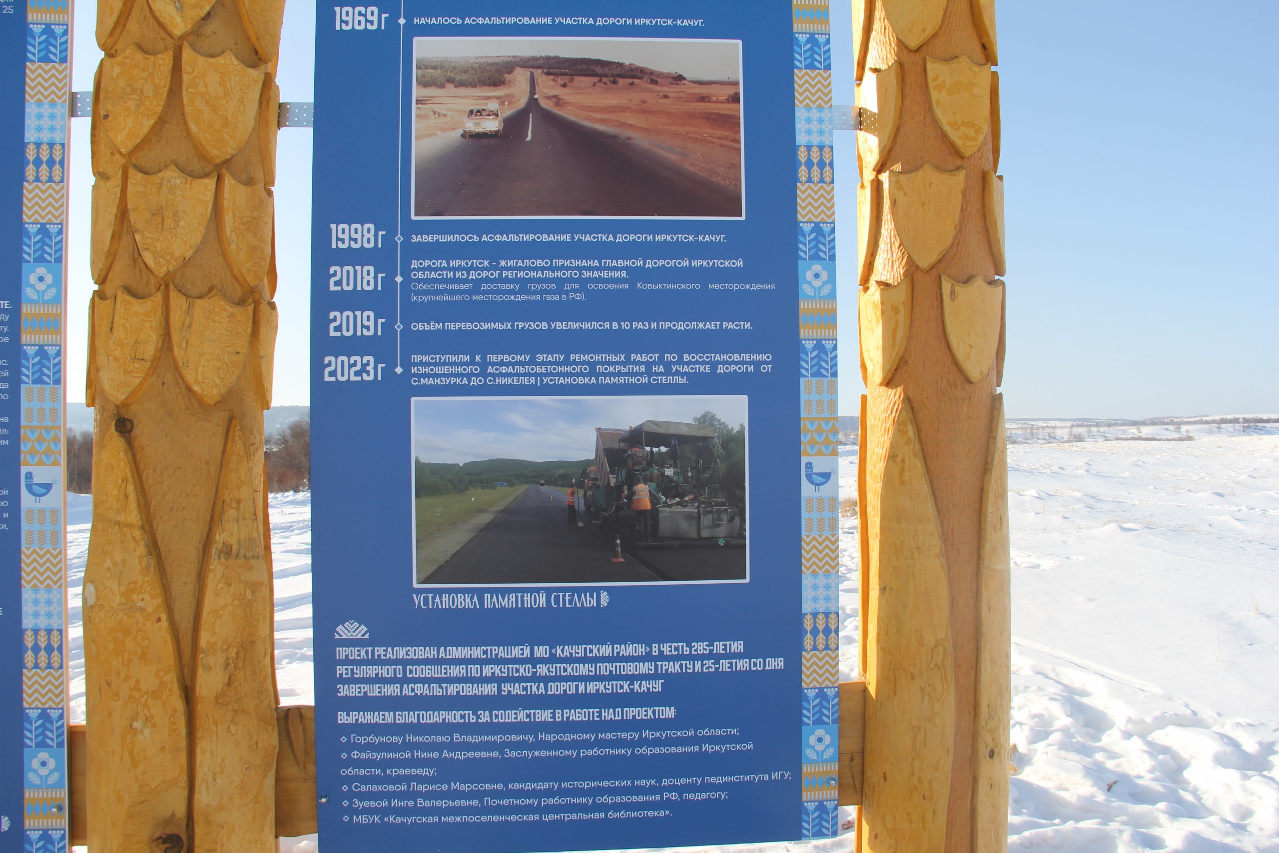 Библиотекари Качугского района ежегодно составляют календарь значимых дат и событий Приленья. Однажды перечень попал на стол мэра района Евгения Липатова. Напоминание об историческом событии – 285-летии с момента открытия постоянно действующего Иркутско-Якутского почтового тракта – послужило началом реализации необычного проекта. Финал гости и жители Качугского района наблюдали 29 февраля. На дороге у незамерзающего Хромовского ручья прошла торжественная церемония открытия стелы «Якутский тракт».