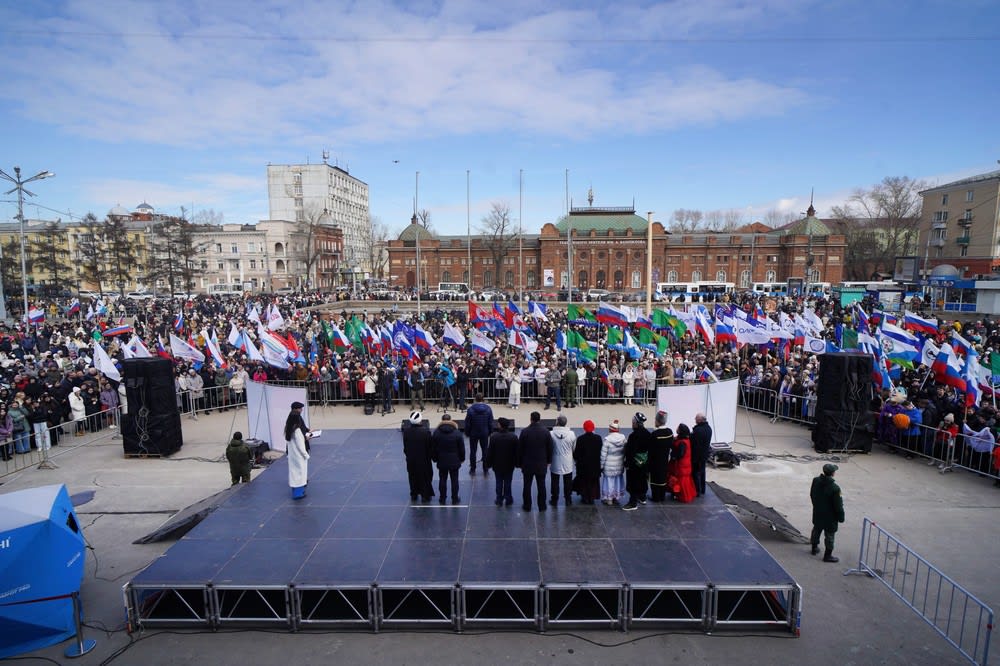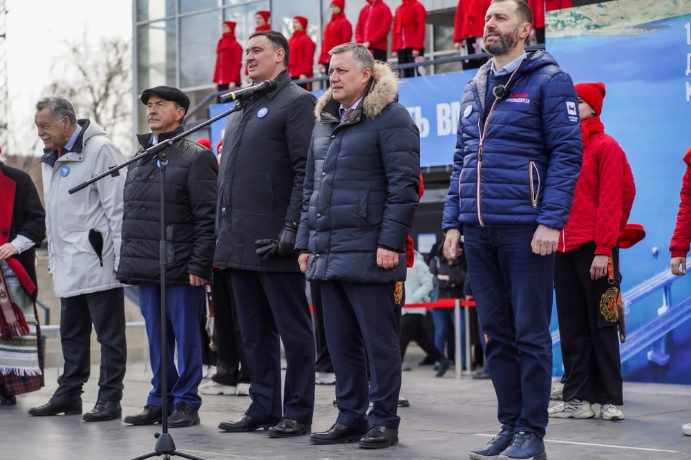 – Сегодня очень важно понимать, что крымчане сами изъявили желание быть вместе с Россией, вместе большой семьей. После Крыма и Севастополя Луганская Народная Республика, Донецкая Народная Республика, Херсонская область, Запорожье также своим волеизъявлением вошли в нашу большую семью под названием «Российская Федерация». Сегодня мы вместе с вами помогаем нашему подшефному городу Кировску, жители которого передают вам слова большой благодарности. Каждый раз, когда мы приезжаем в этот город, то видим радость в глазах оттого, что мы их не предали, протянули руку помощи. Важно поддерживать их всегда! – обратился к собравшимся губернатор Иркутской области Игорь Кобзев.