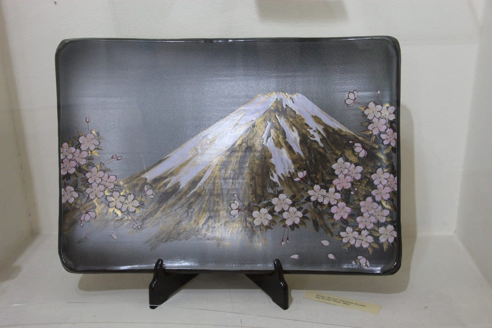 Чуть ниже – керамическое панно, изображающее цветущую сакуру на фоне горы Фудзи. Это подарок музею от Есиро Мори, сына Сигеки Мори, премьер-министра Японии. К слову, один из мастеров, приезжавший в Шелехов в рамках культурного обмена в 2007 году, узнал свою работу.