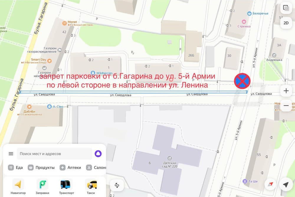 Сейчас на улице Свердлова разрешена парковка автомобилей с двух сторон, это приводит к сужению проезжей части и затруднению движения. Новые меры позволят увеличить пропускную способность участка дороги.