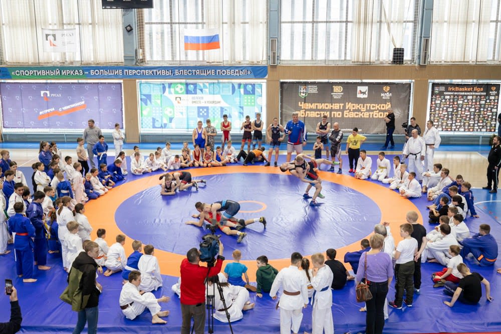 После общения состоялась большая тренировка, в которой смогли принять участие все желающие. Директор Иркутского алюминиевого завода, кандидат в мастера спорта по дзюдо Артём Фоминых тоже вышел на борцовский ковёр и со всеми спортсменами сделал разминку, а также показал несколько приемов.