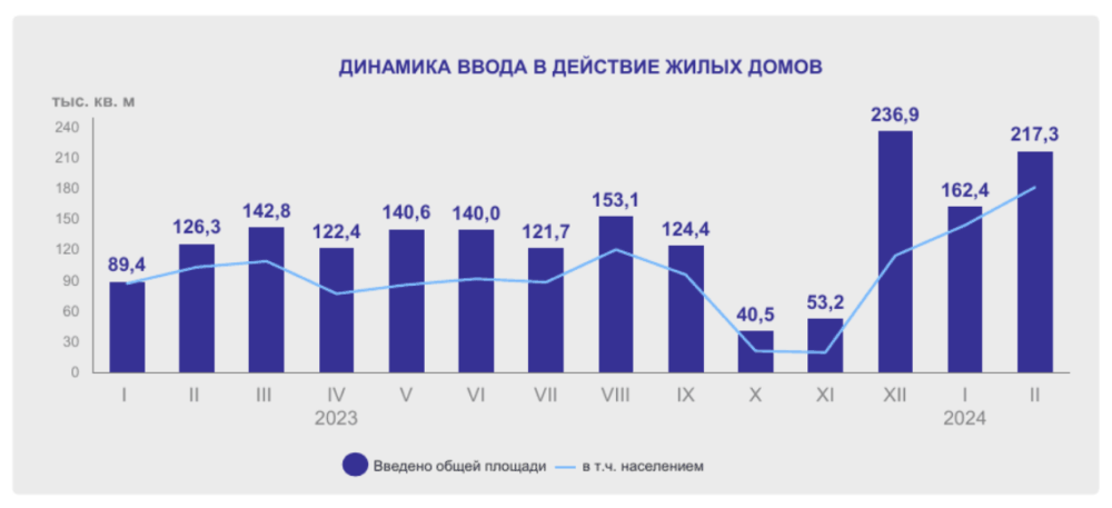 млрд рублей, сдано в эксплуатацию 2696 зданий, из них 62 нежилых (промышленные, коммерческие,