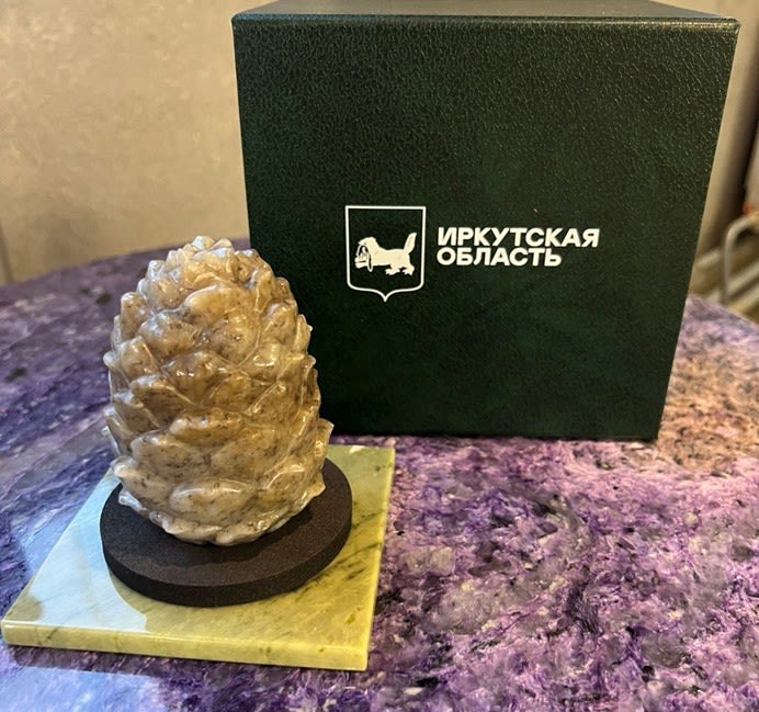 – Это был ноябрь, а уже к марту следующего года мы сделали сапоги из чароита с инкрустацией нефритом и офикальцитом, – рассказала Оксана Власова. – Перед нами была поставлена задача в короткие сроки изготовить сувениры для гостей павильона Иркутской области. Мы сделали объемные и плоские шишки из медового нефрита, которые до сих пор презентуют на выставке. Когда наши сотрудники узнают, что подарки получили, например, президент Белоруссии или министр экономического развития России, это их очень мотивирует. Мы же гордимся тем, что получили приглашение от губернатора региона провести дни предприятия на стенде Иркутской области.