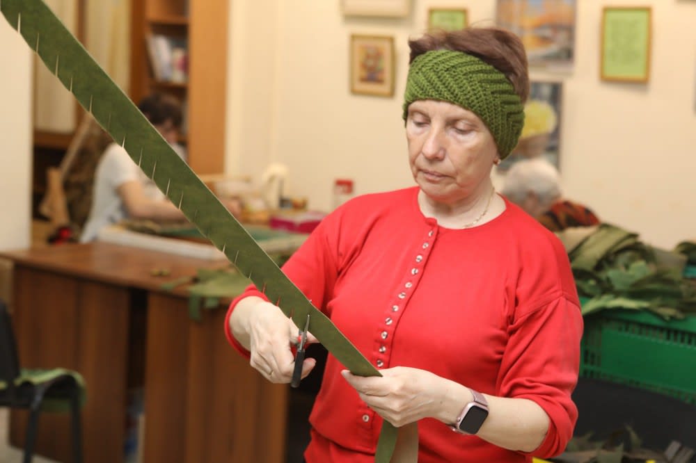 «Приходишь сюда вязать сети и забываешь про свои болячки», – говорят пенсионеры ЖК «Луговое». Несмотря на преклонный возраст, с апреля 2022 года они активно участвуют в акции «СВОих не бросаем» – связали более 100 маскировочных сетей, сделали свыше 100 нашлемников, постоянно отправляют на фронт теплые носки, пледы, безрукавки и многое другое.