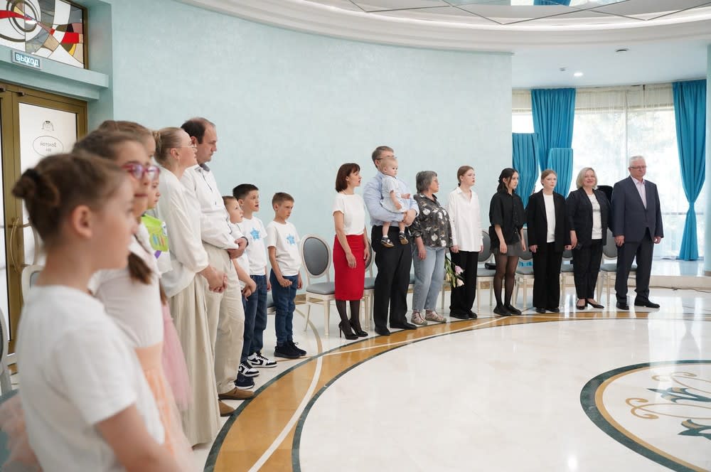 На церемонию во Дворец бракосочетания в Международный день семьи пригласили три семьи, которые живут активной и интересной жизнью.