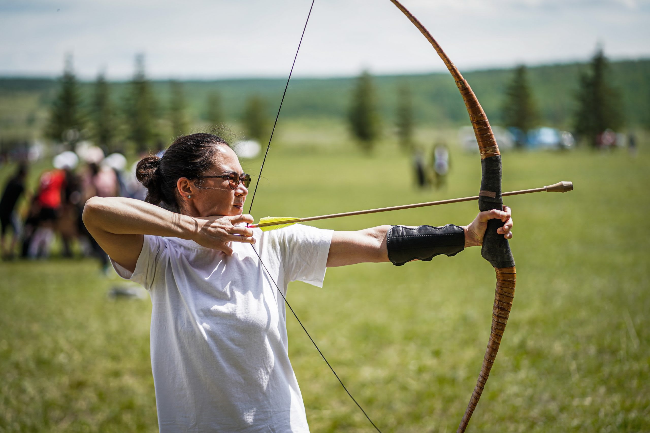 Звенящая тетива, море улыбок, многоголосье. На площадке лучников было людно. Слово «сурхарбан» означает дословно «стрельба в сур». «Сур» – это мишень, сделанная из колышка, который обмотан кожаным ремнем и воткнут в землю. Слово «харбан» переводится как «состязание». Издавна у бурят считалось, что метко стрелять и уметь мастерски держаться в седле должен каждый.