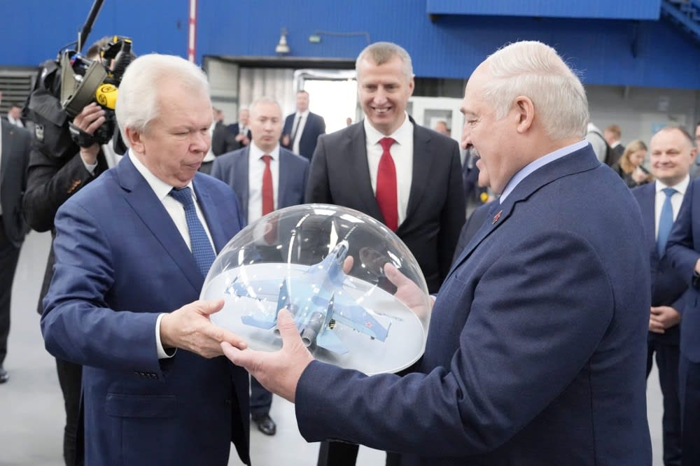 На заводе белорусскому лидеру подарили модель истребителя Су-30СМ2. «Мой любимый самолет», – заявил президент.