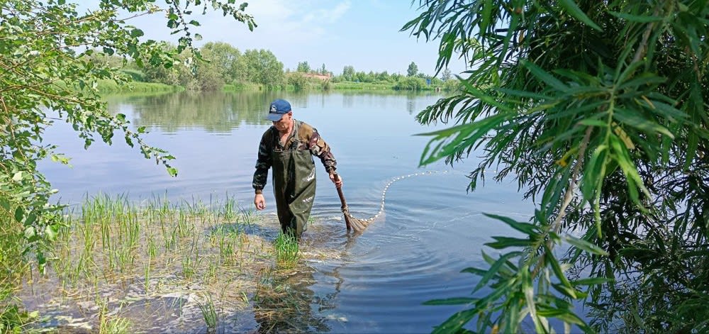 Вместе с представителями контролирующих органов, научных организаций, предприятий идем вдоль прудов Бельского рыбоводного завода. Изначально их построили еще в Советском Союзе, но после они были разрушены. В 2011 году новый собственник завода восстановил пруды.