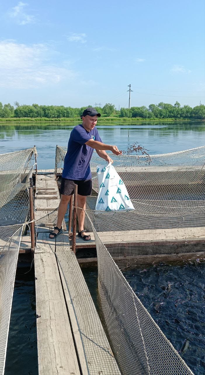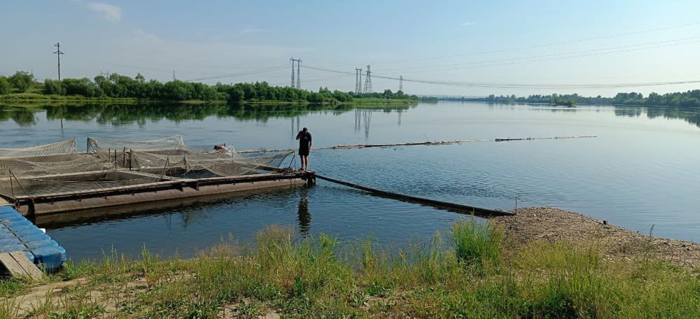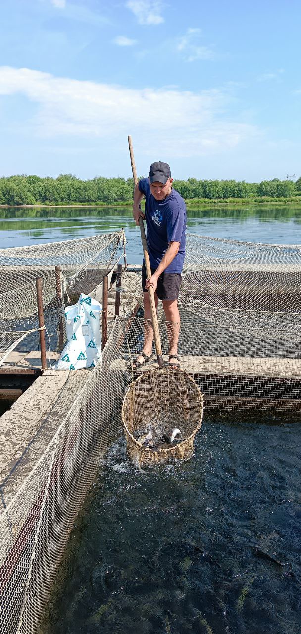 – Здесь у нас живет товарная форель, – поясняет Степан. – Аппетит у нее очень хороший. Но в жару сильно стараемся не кормить. В прошлом году на реке были частые наводнения. В этот раз пока только раз вода поднималась. Мы контролируем ситуацию, если нужно, перемещаем садки. Рыбам тут хорошо живется: кормят, тепло.